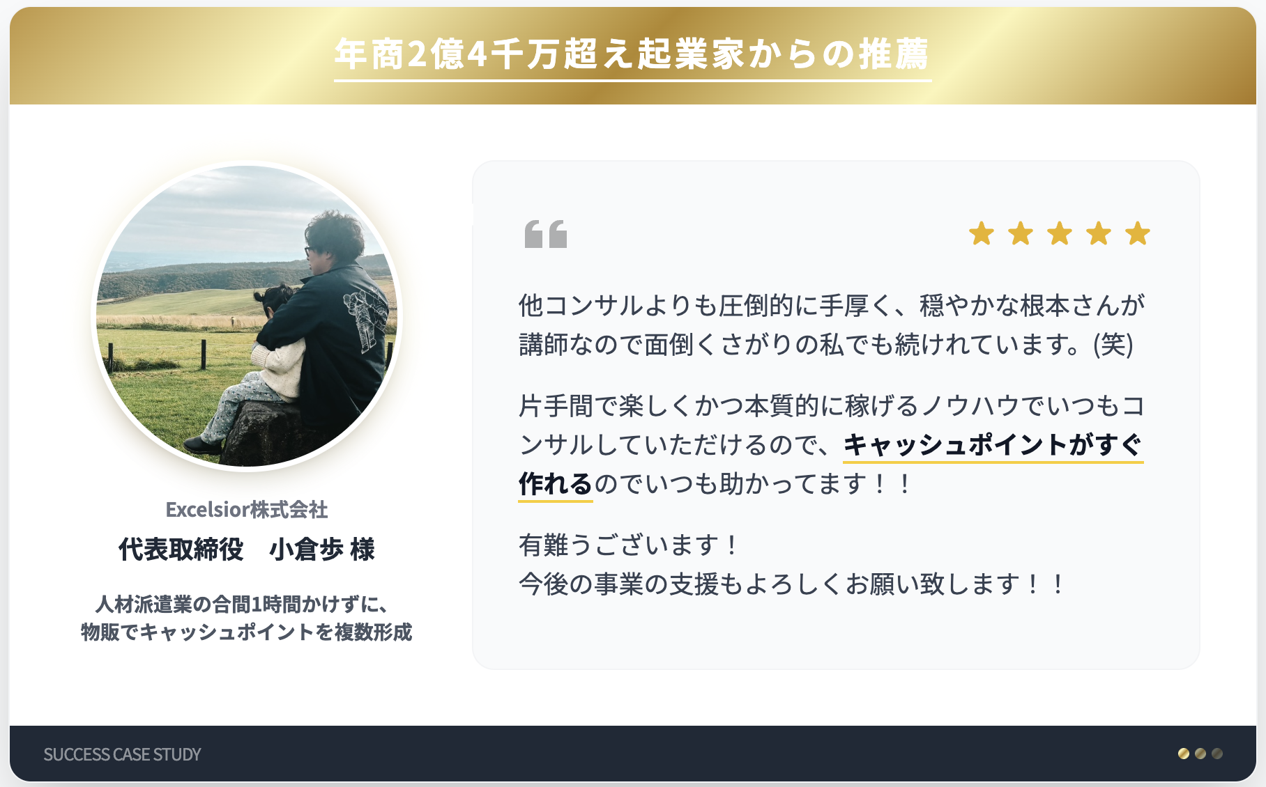 根本1人目のクライアントで5年間一緒に苦楽を友にした浦田様から弊社サービスの推薦の声頂きました!